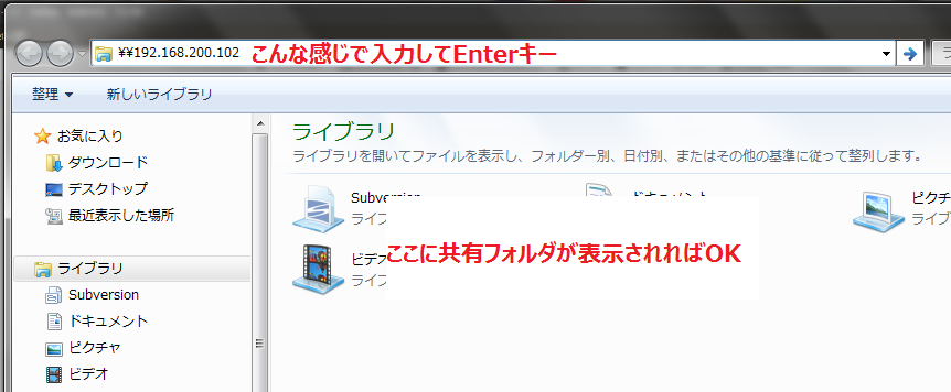 共有フォルダが表示されたら、接続完了です!
