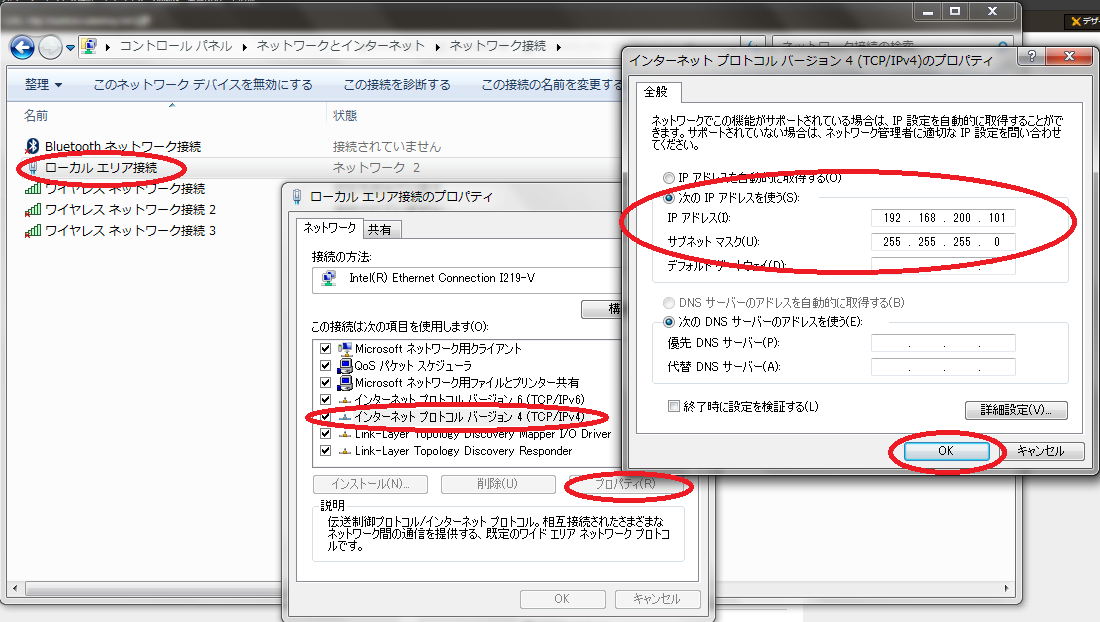 ローカルエリア接続がないよーって場合はLANケーブル抜き差しやPC再起動なんかをしてみてください