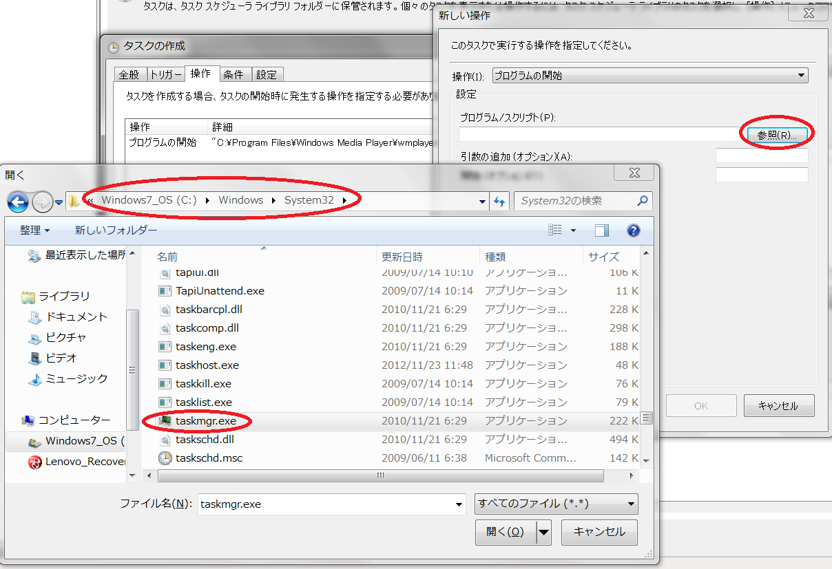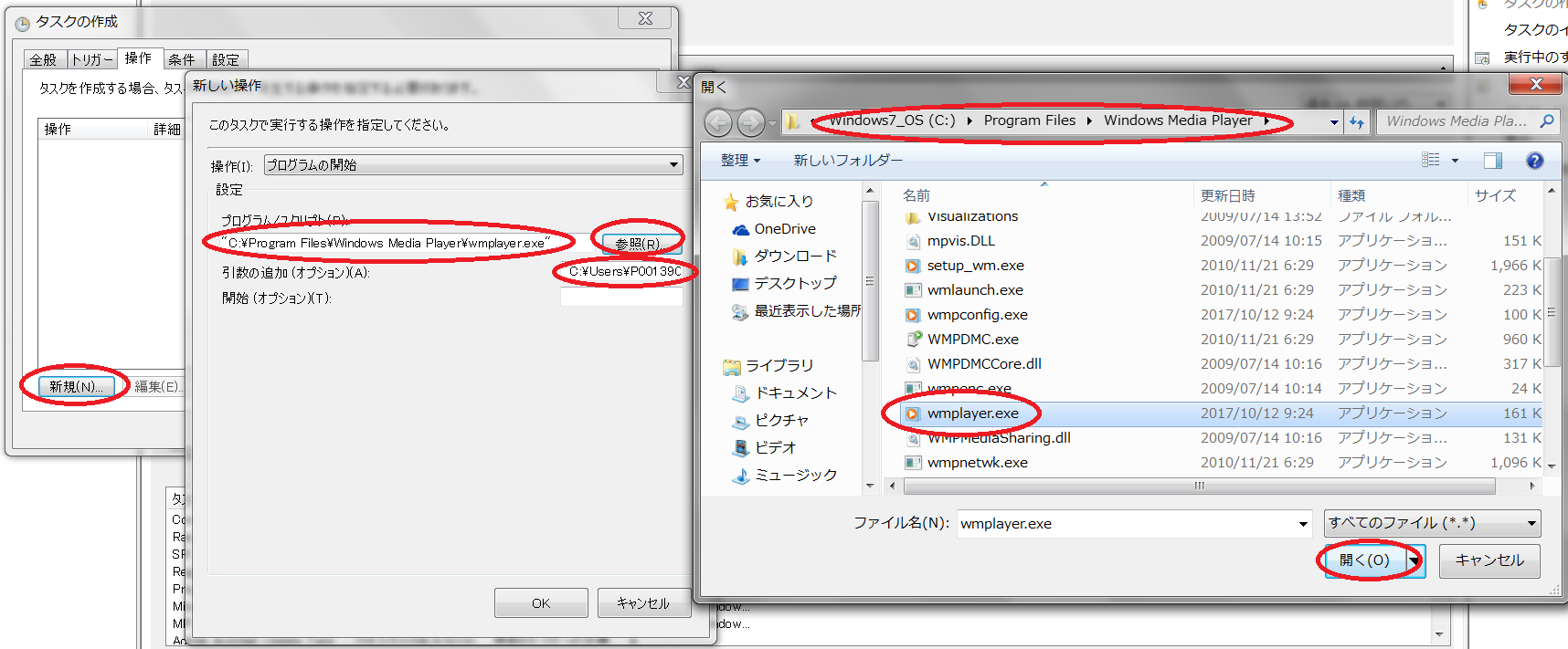 [プログラム/スクリプト]でWindows Media Playerを指定