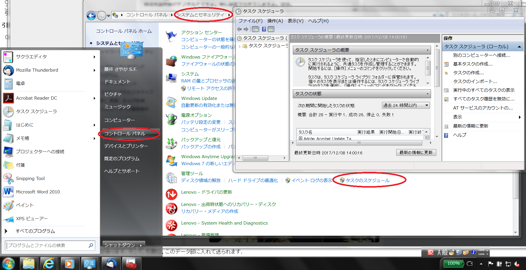[スタート]-[コントロールパネル]-[システムとセキュリティ]-[タスクのスケジュール]