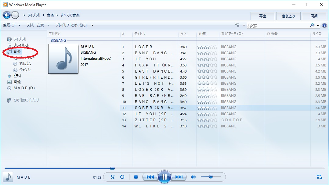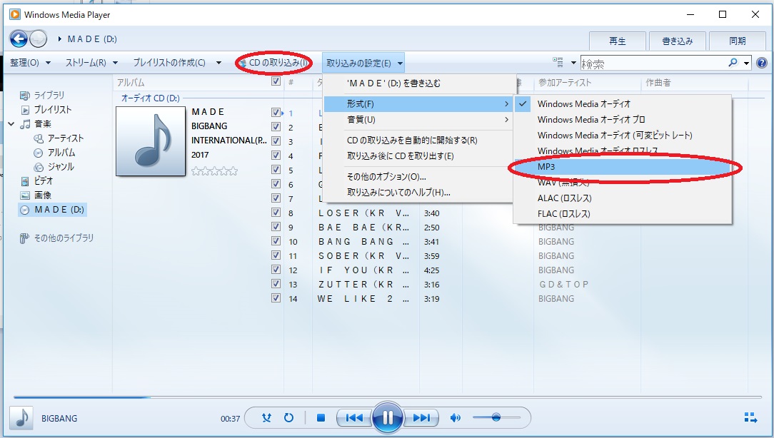 1.曲をパソコンに取り込む(Windows Media Player経由mp3)